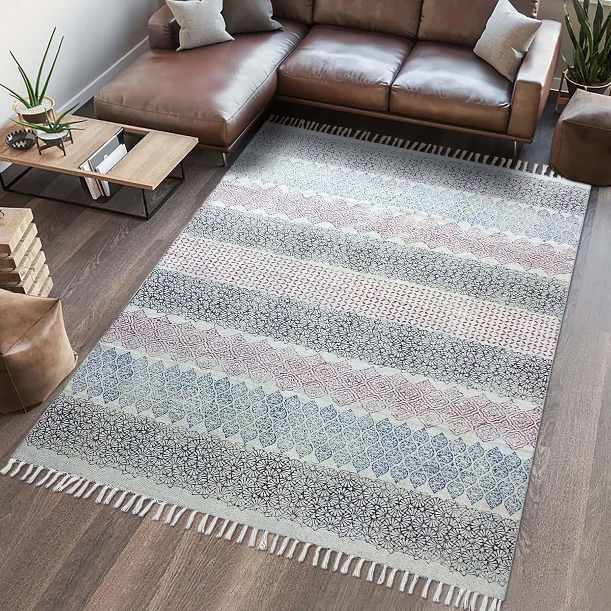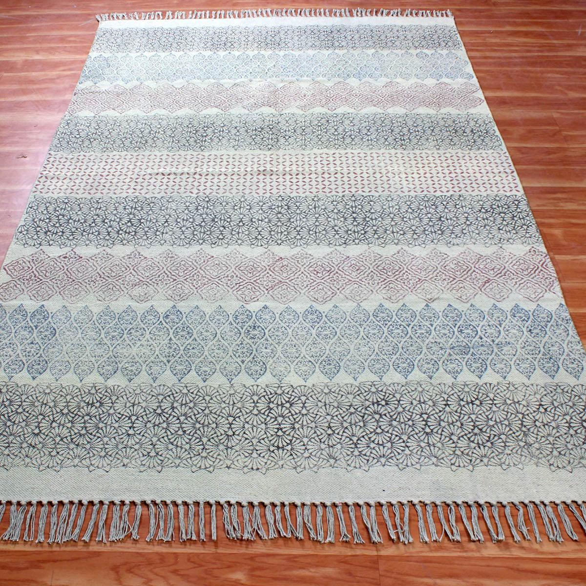 Hand block printed cotton rugs offer a harmonious blend of artisanal craftsmanship and natural comfort. Each rug is a testament to timeless elegance, meticulously crafted by skilled artisans. With intricate patterns and vibrant hues, these rugs infuse spaces with warmth and character, inviting a touch of traditional charm into modern homes.