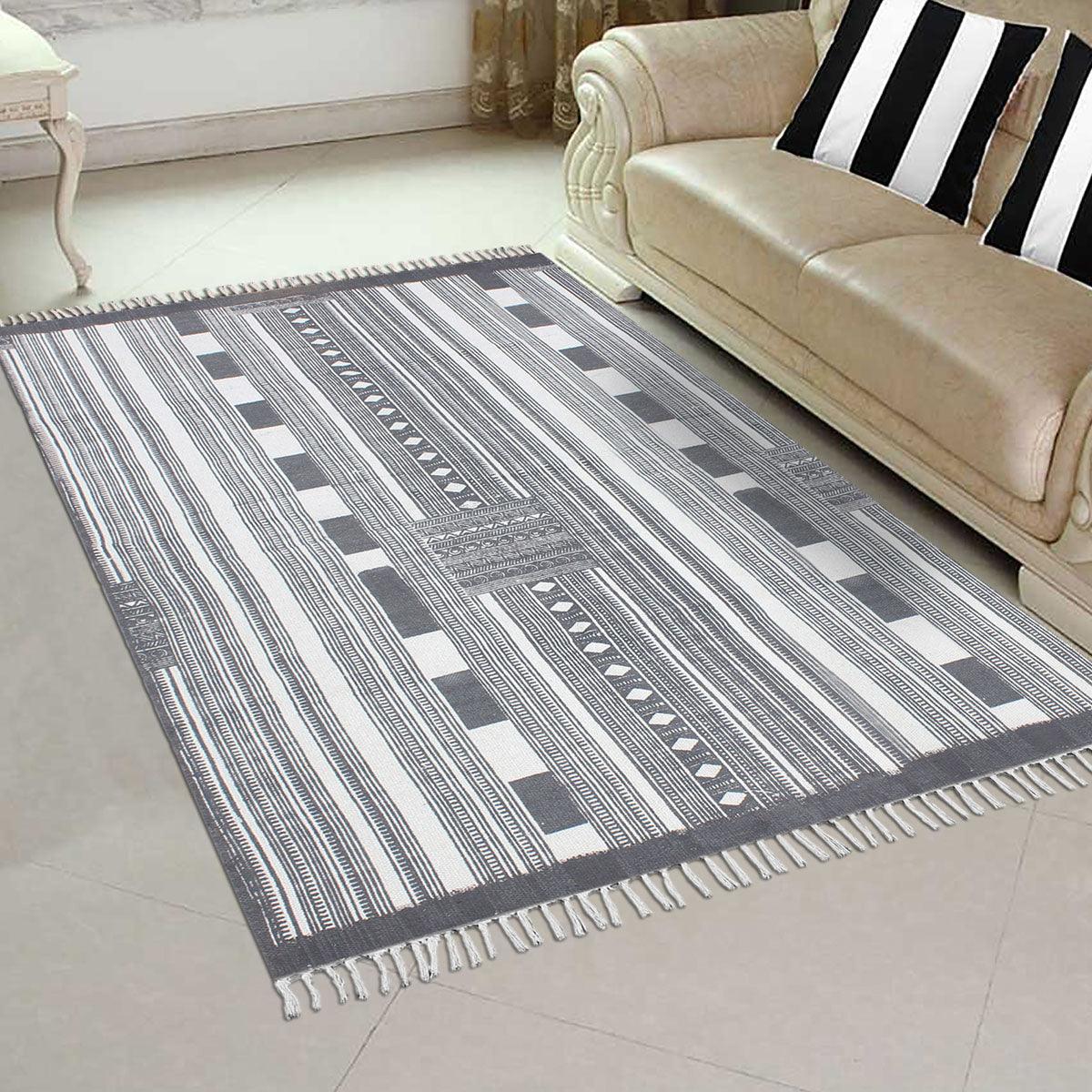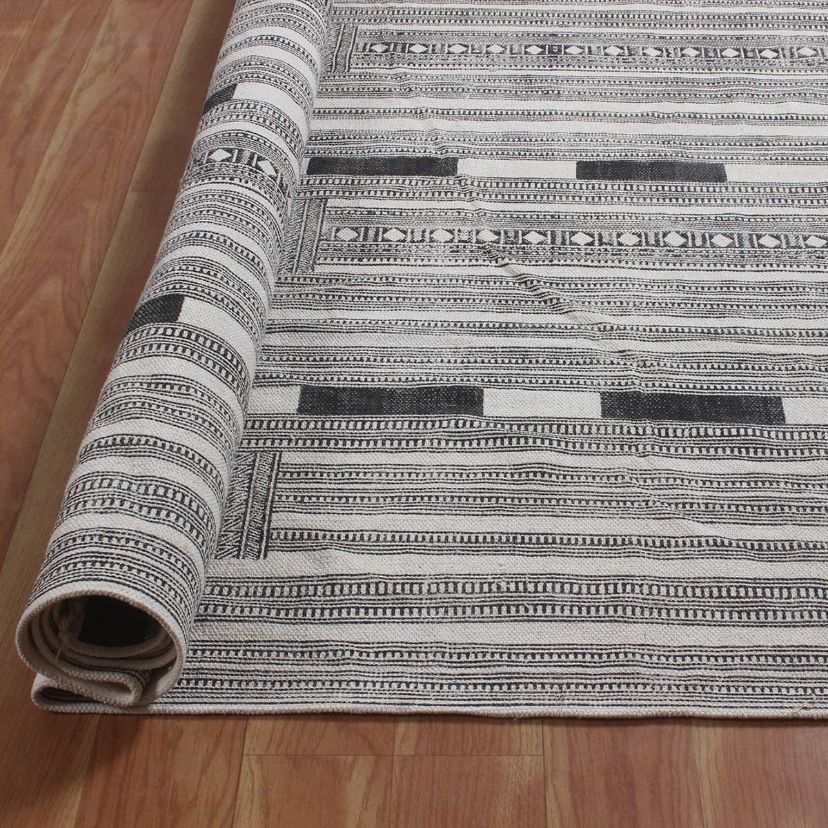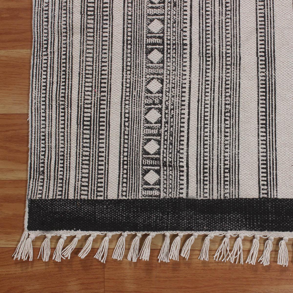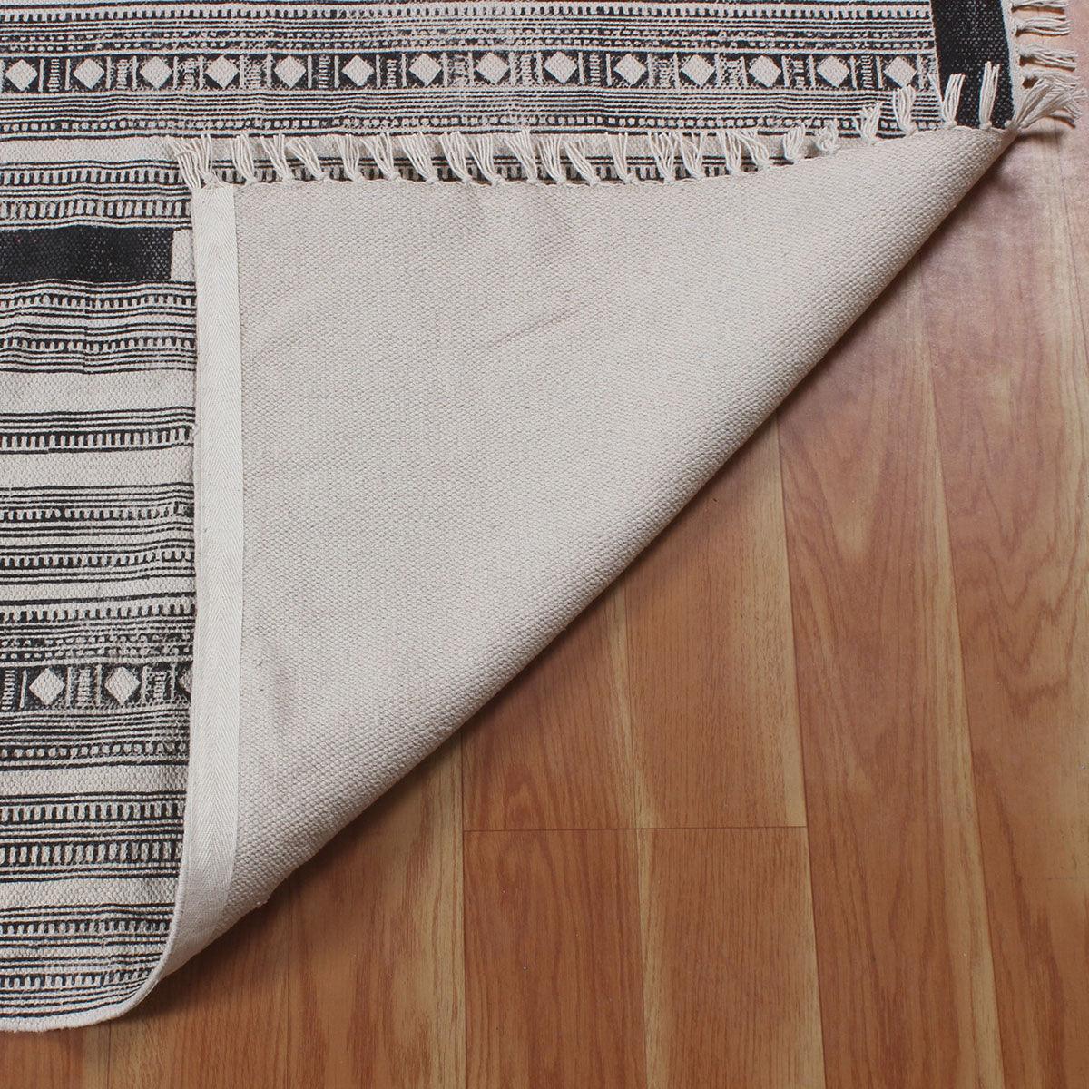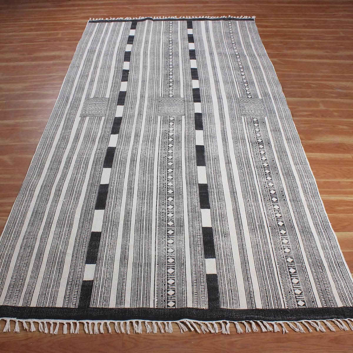 Hand block printed cotton rugs offer a harmonious blend of artisanal craftsmanship and natural comfort. Each rug is a testament to timeless elegance, meticulously crafted by skilled artisans. With intricate patterns and vibrant hues, these rugs infuse spaces with warmth and character, inviting a touch of traditional charm into modern homes.
