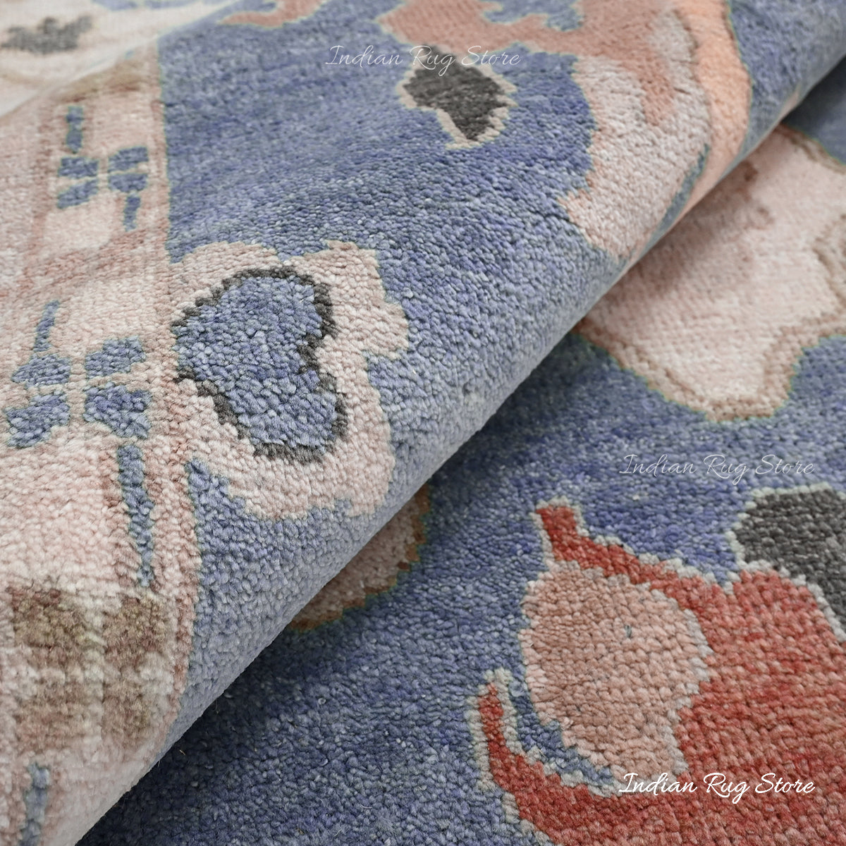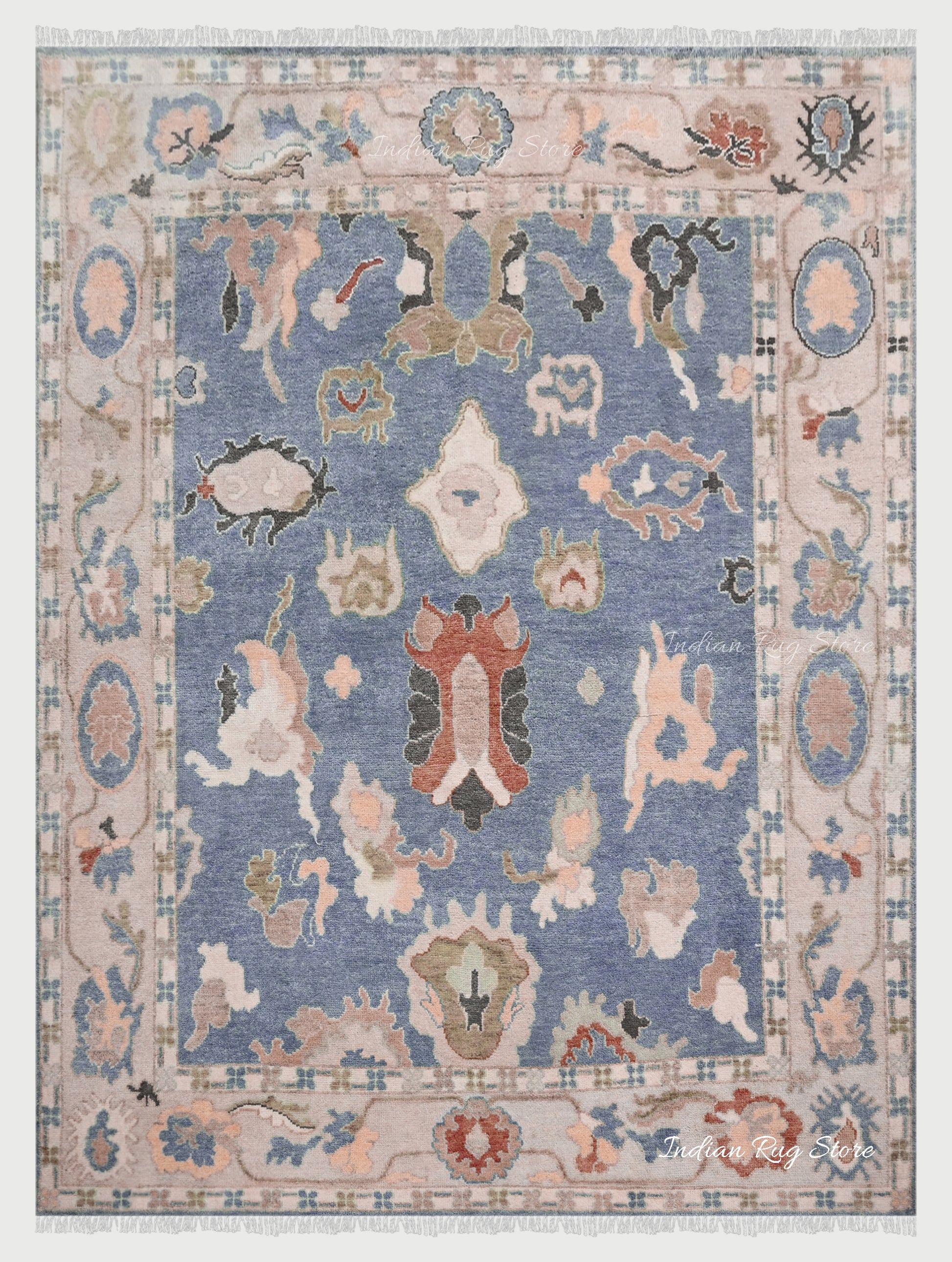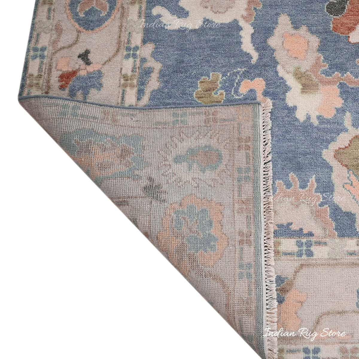 Natural Hand Knotted Blue Oushak for Bedroom Rug