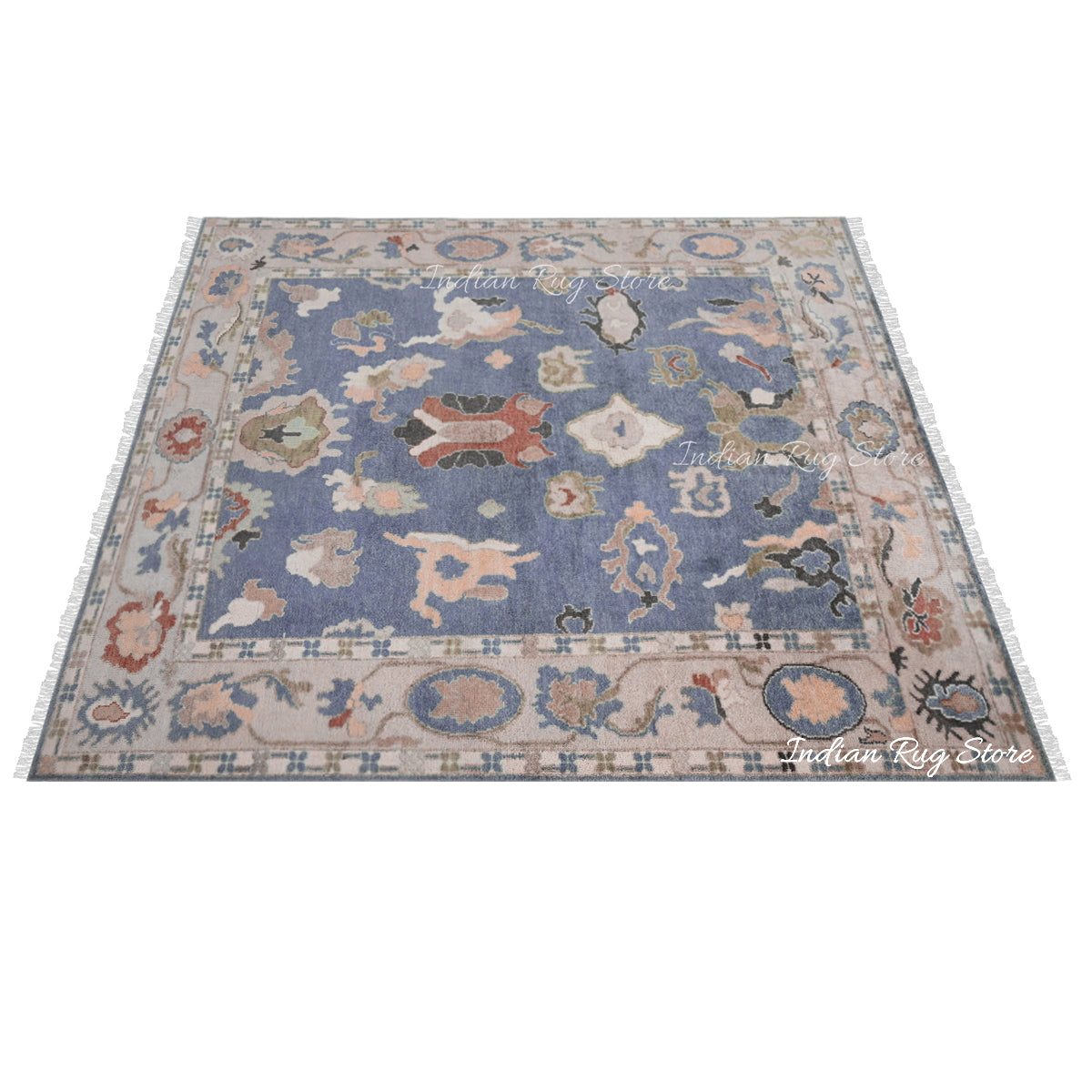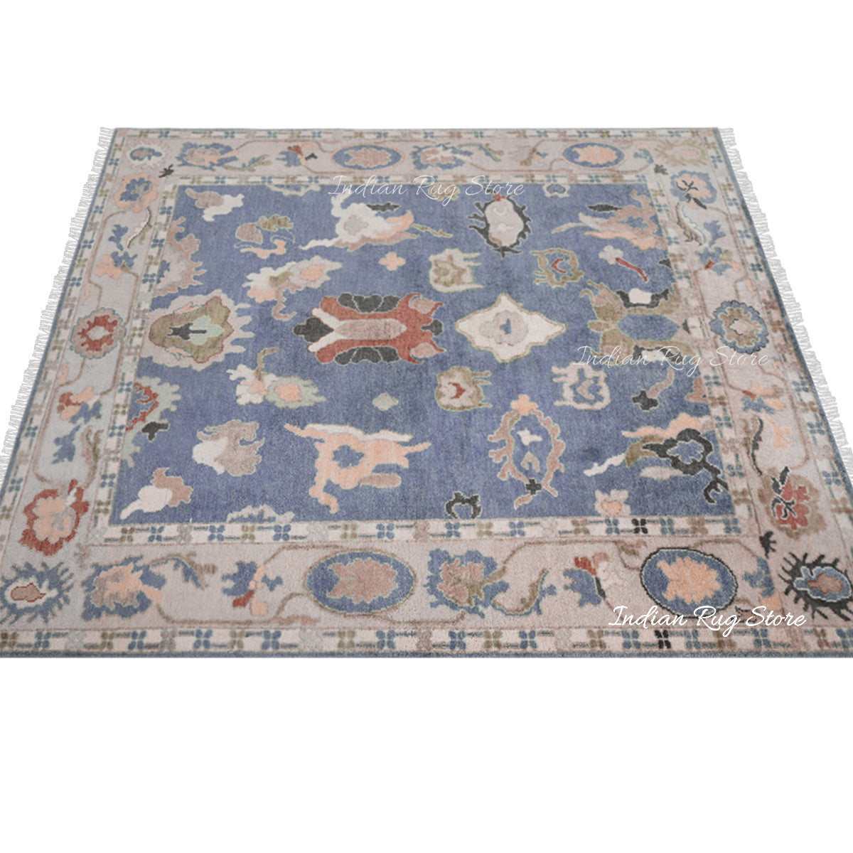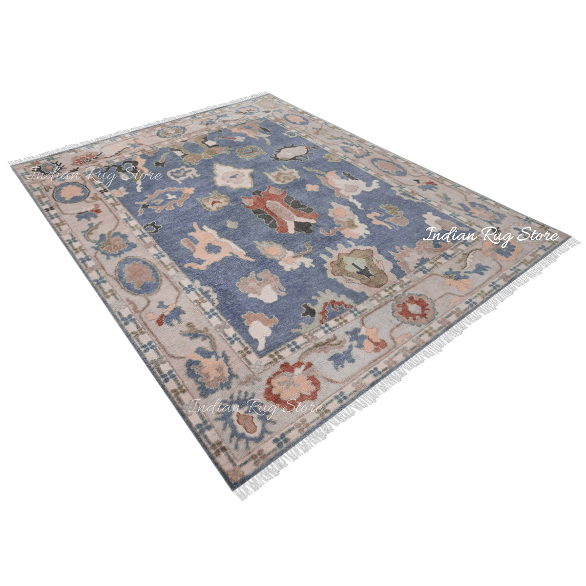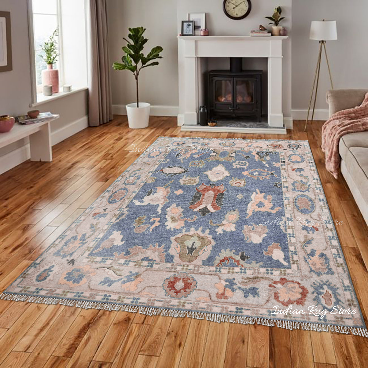 Natural Hand Knotted Blue Oushak for Bedroom Rug