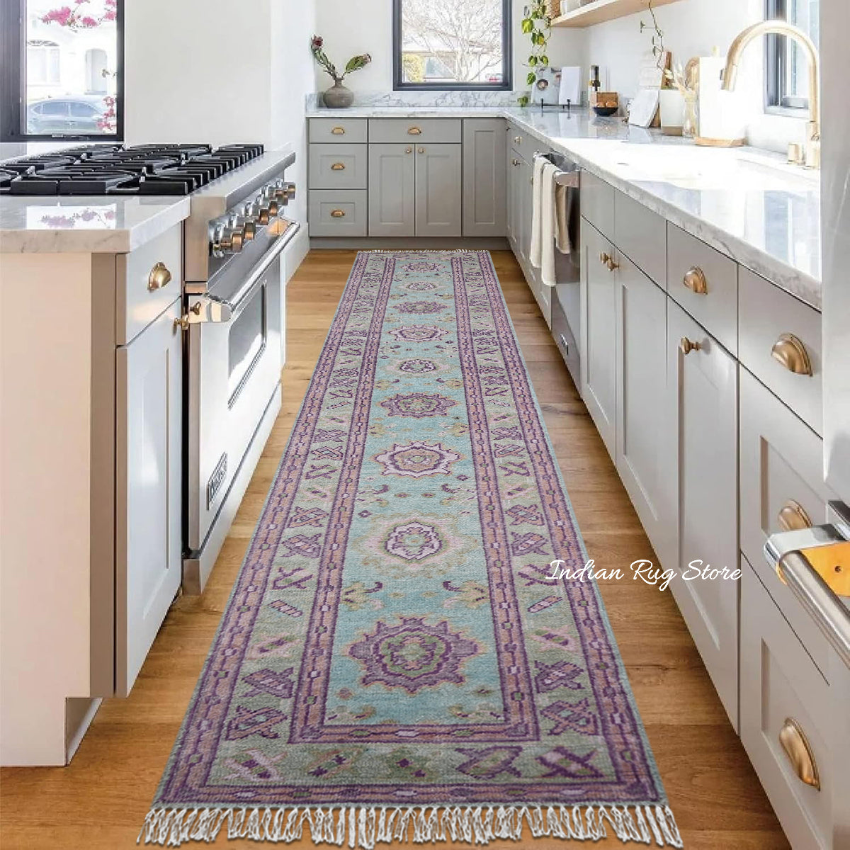Indulge in luxury with our hand-knotted artisan rug, crafted from premium Merino wool. Featuring a timeless Oushak-style design, it blends floral motifs and Turkish-inspired patterns for classic charm. Each knot showcases unparalleled craftsmanship, ensuring durability and elegance.