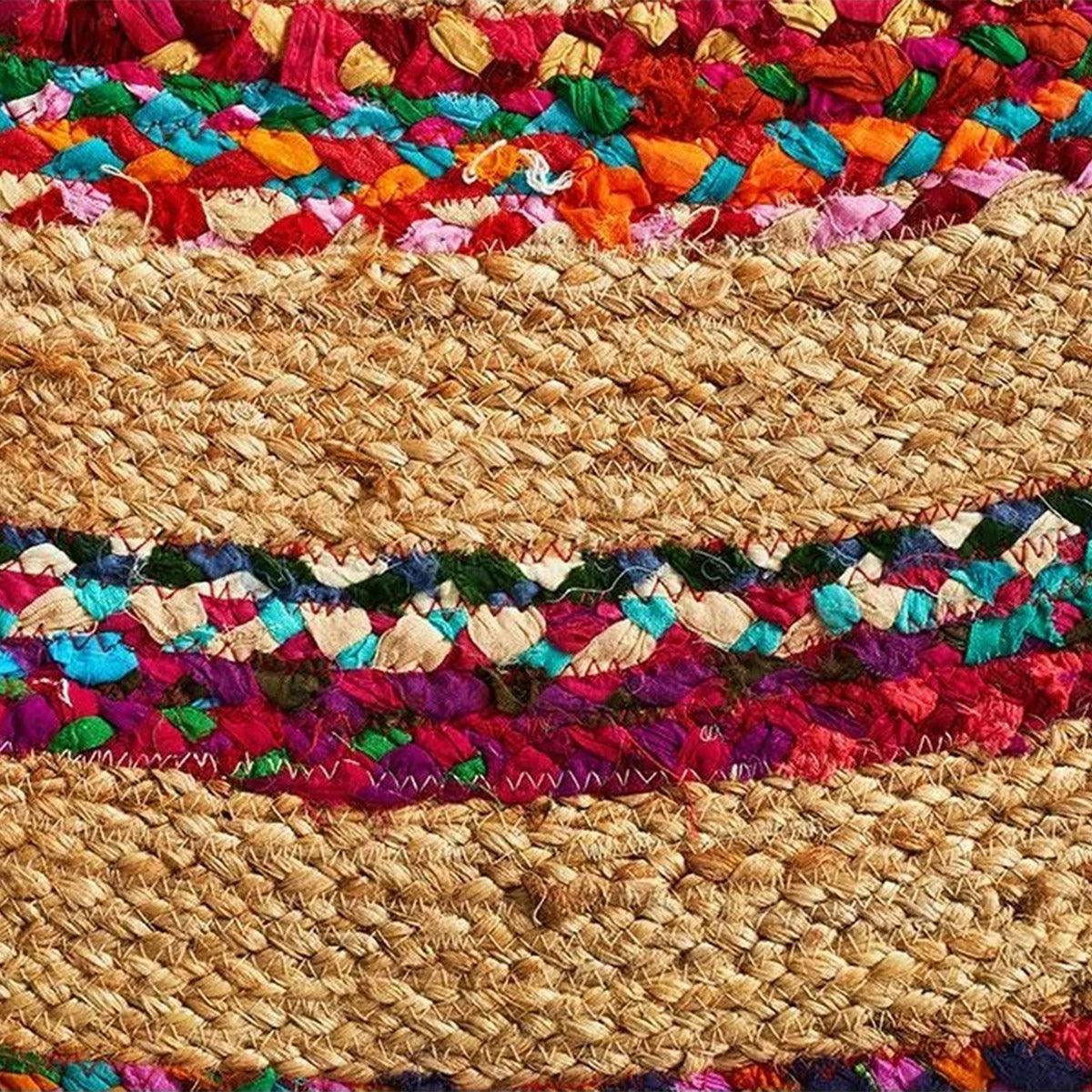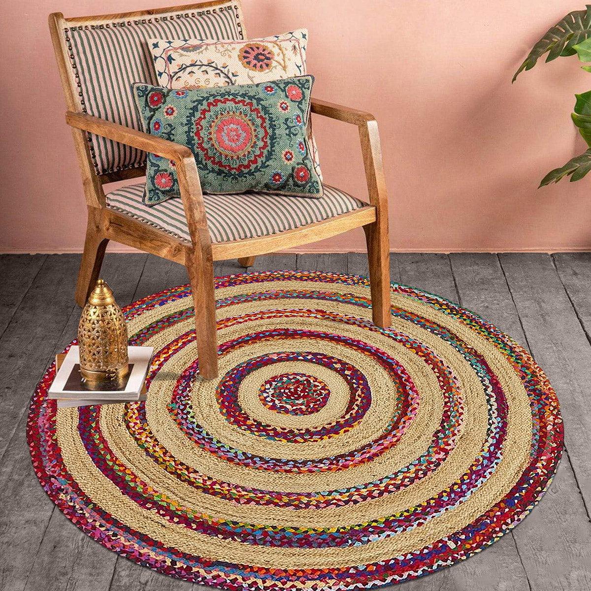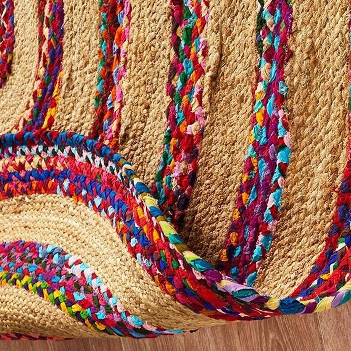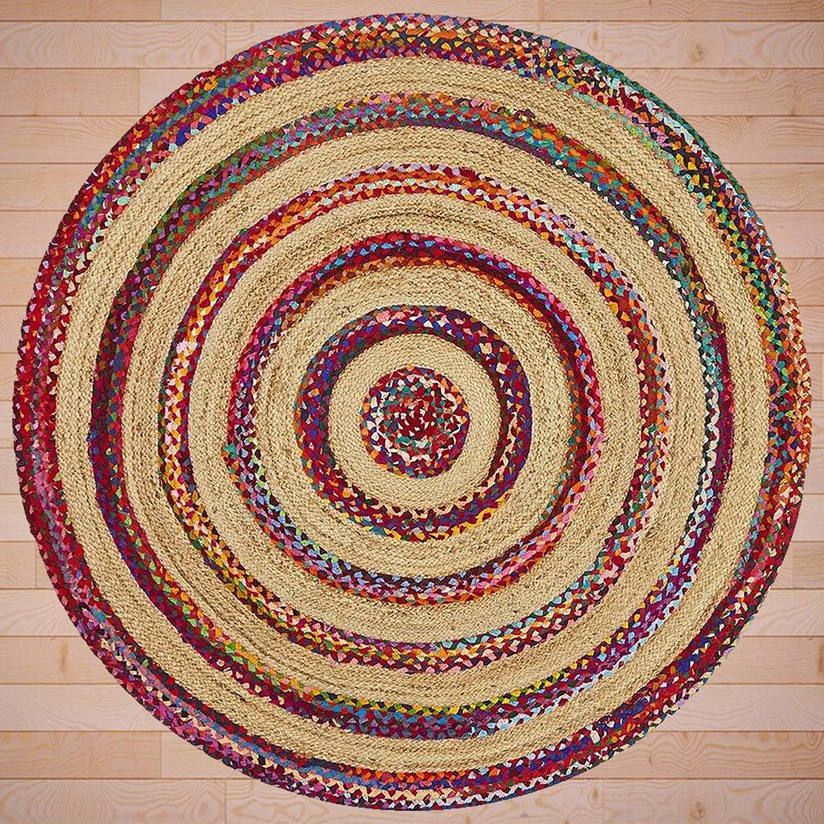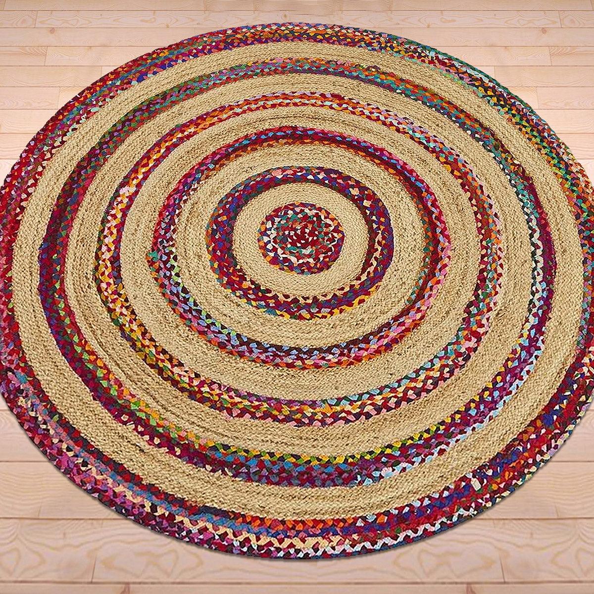 Alfombra de exterior de algodón redonda trenzada a mano multicolor