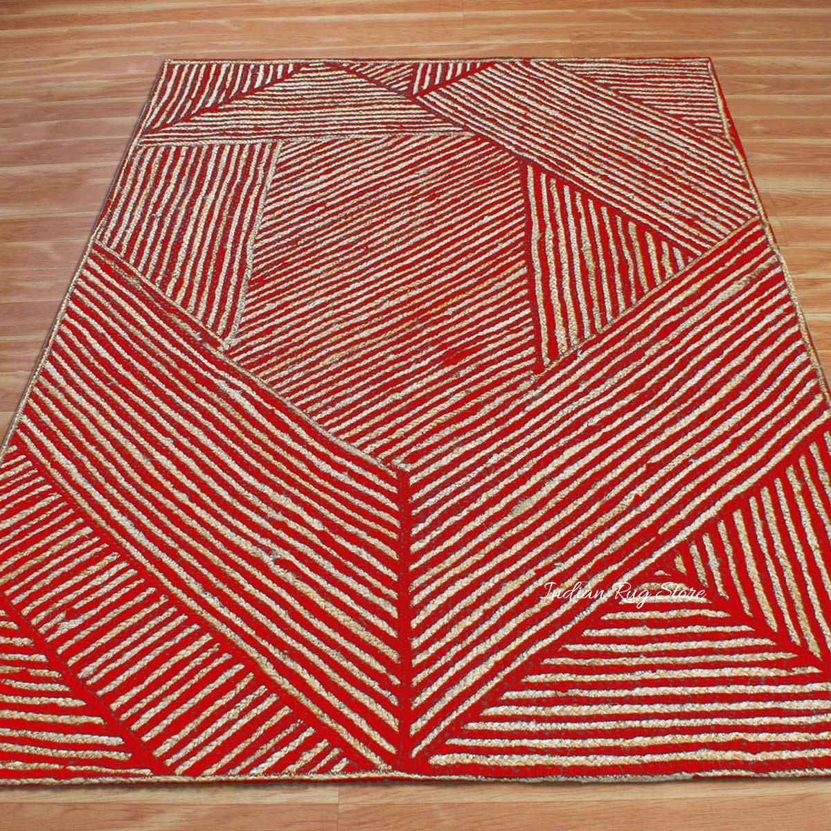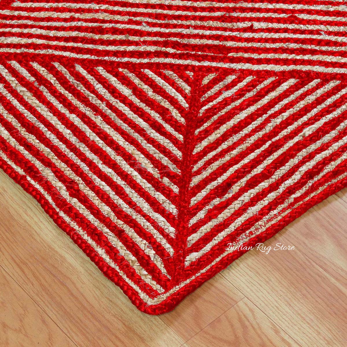 Bellissimo tappeto da ingresso in juta intrecciato a mano rosso beige
