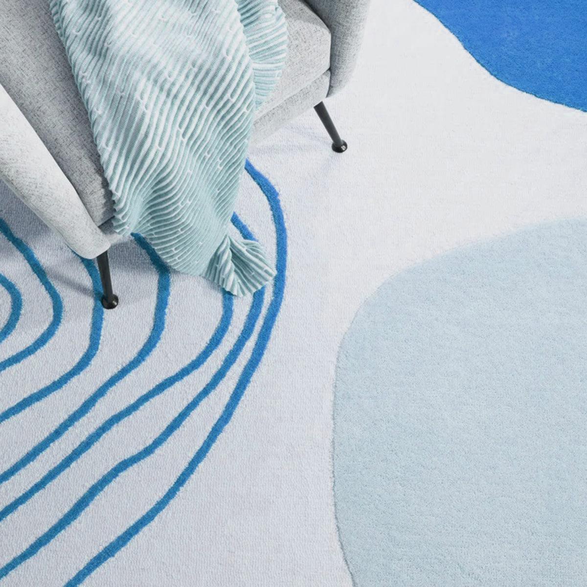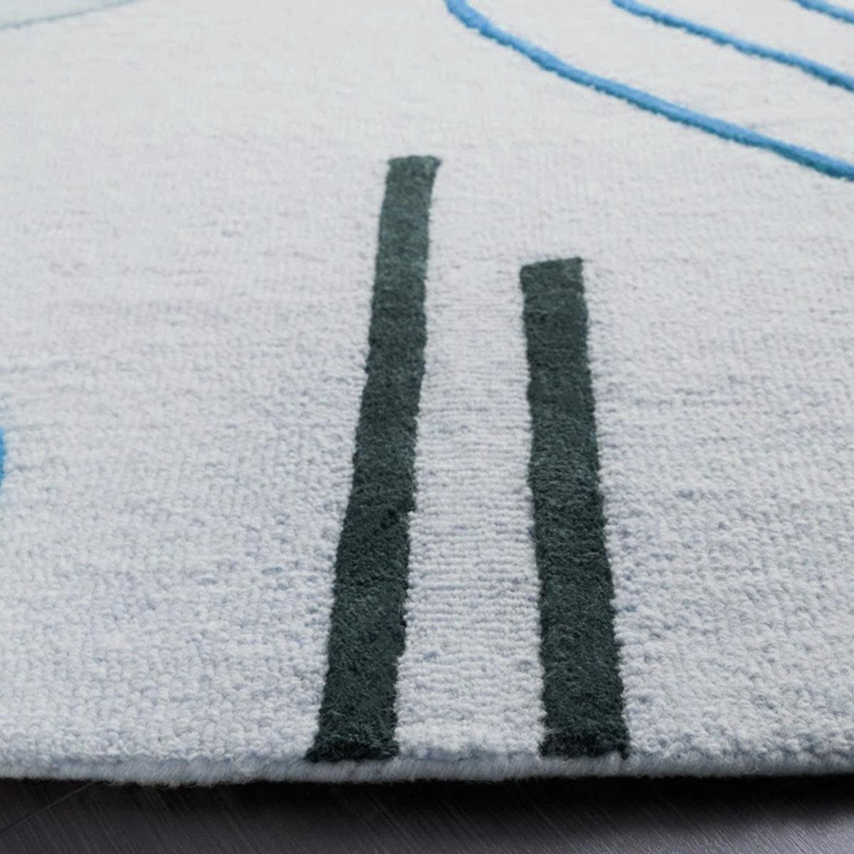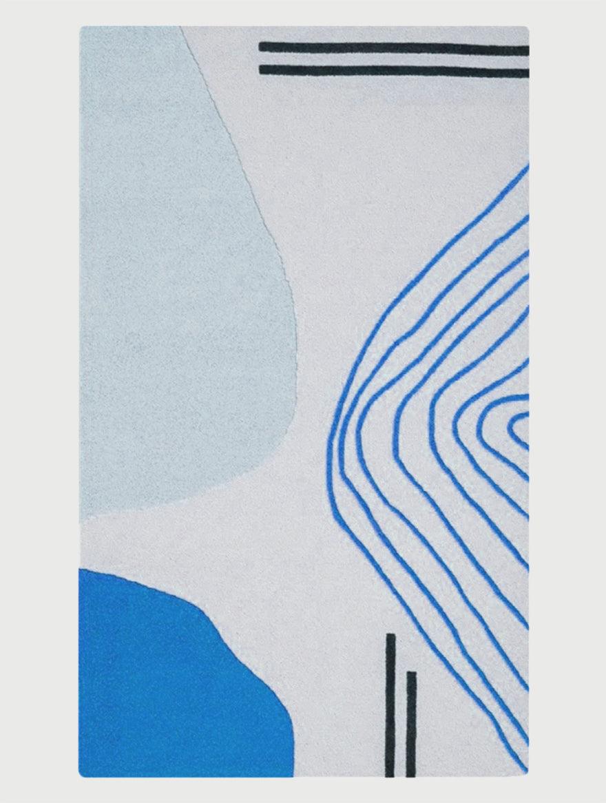 Tappeto in lana naturale annodato a mano blu per sala e patio WK-683