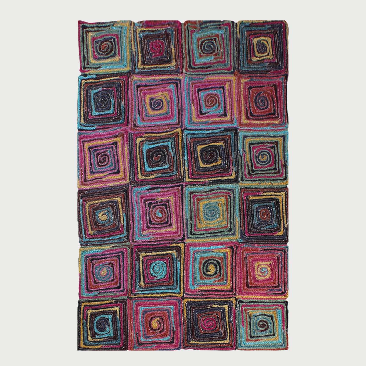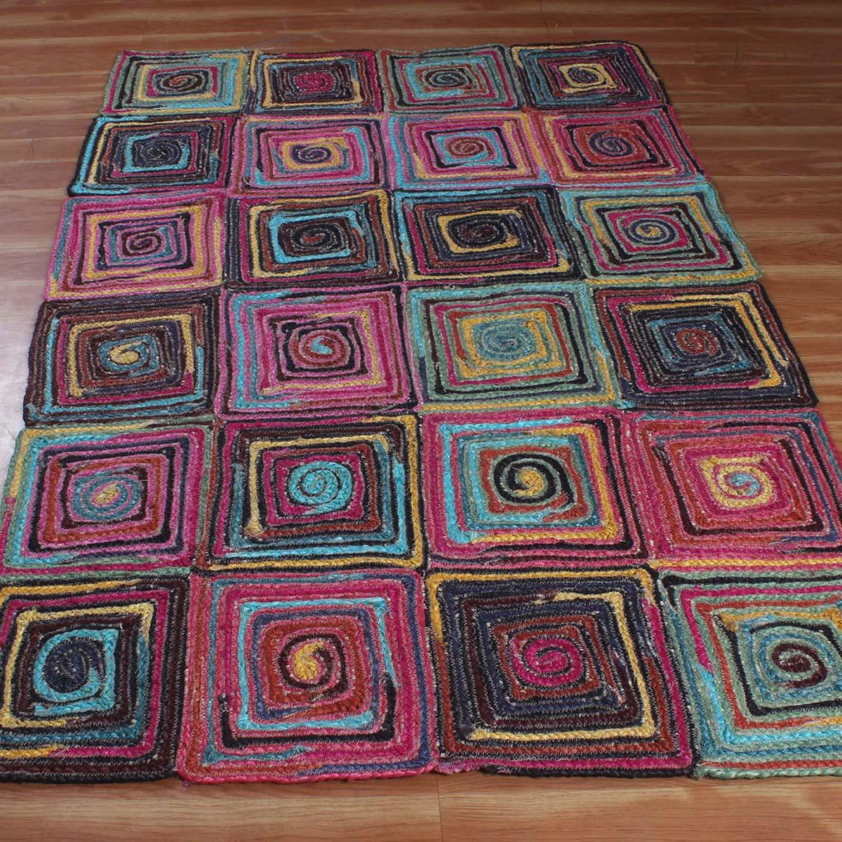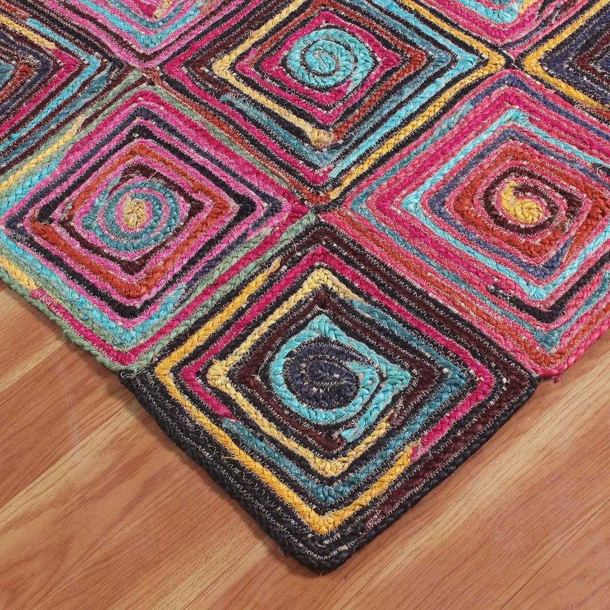 Tappeto geometrico in juta multicolore da fattoria intagliato a mano