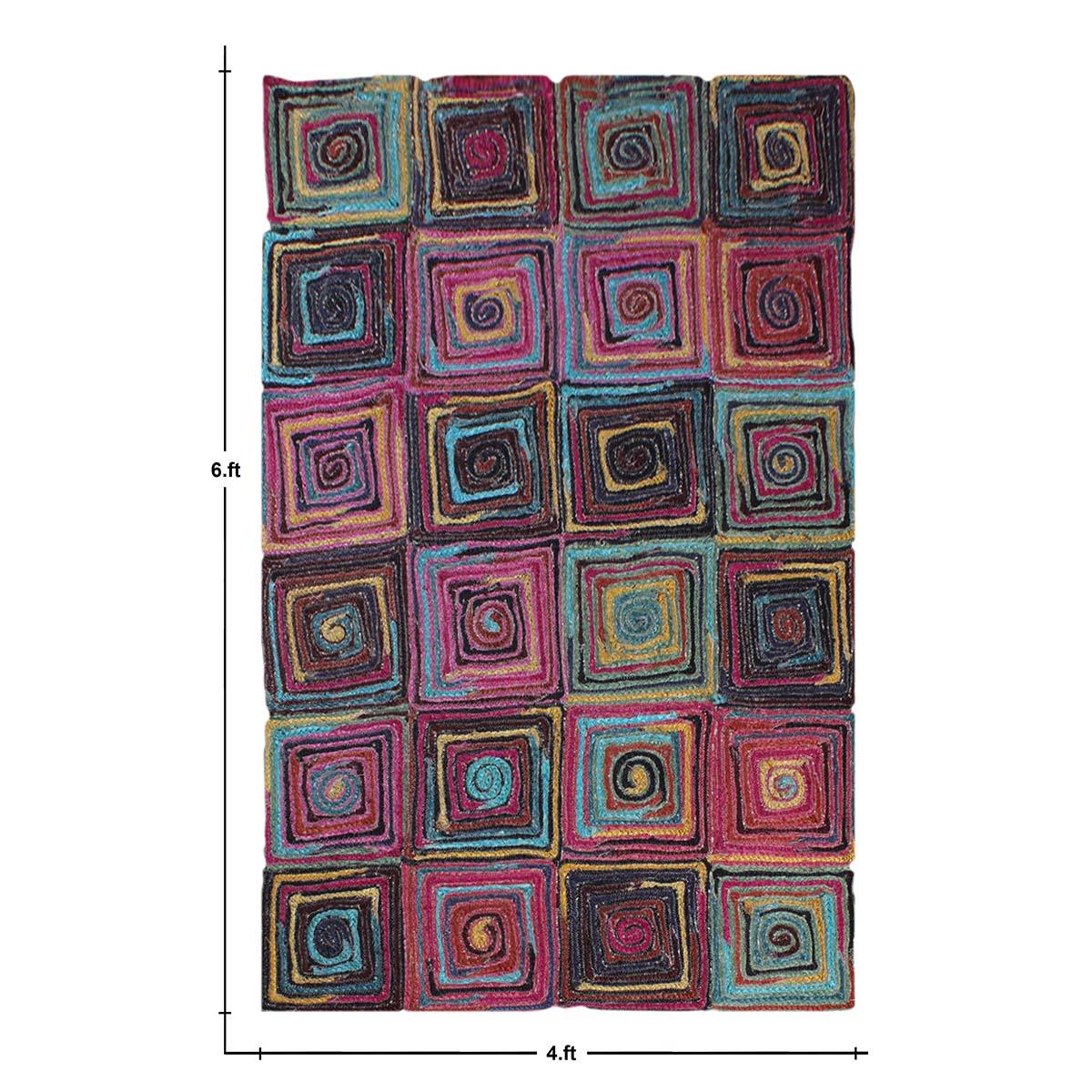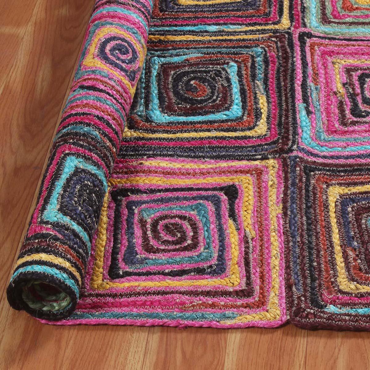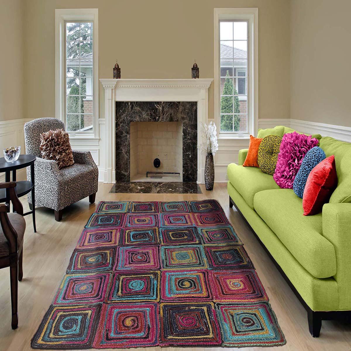 Tappeto geometrico in juta multicolore da fattoria intagliato a mano