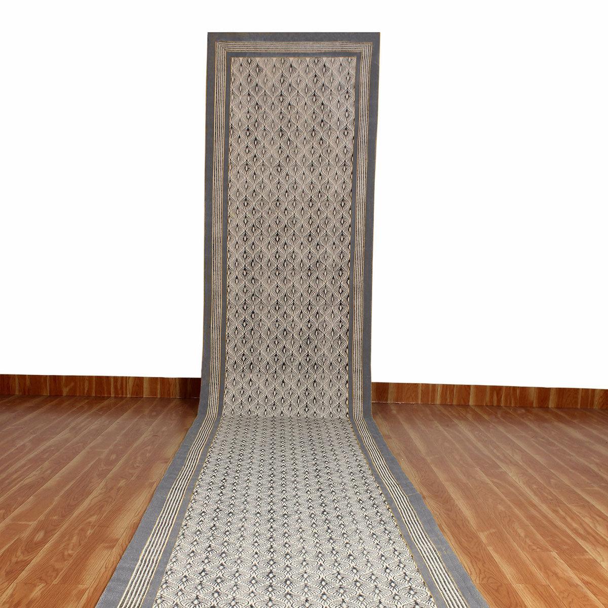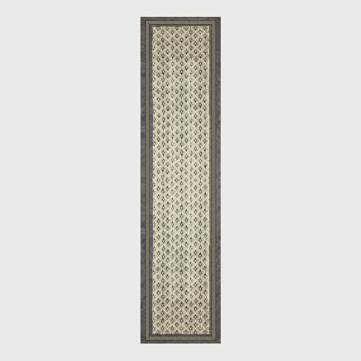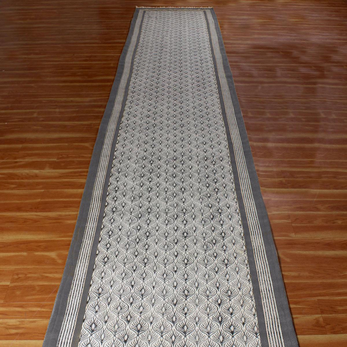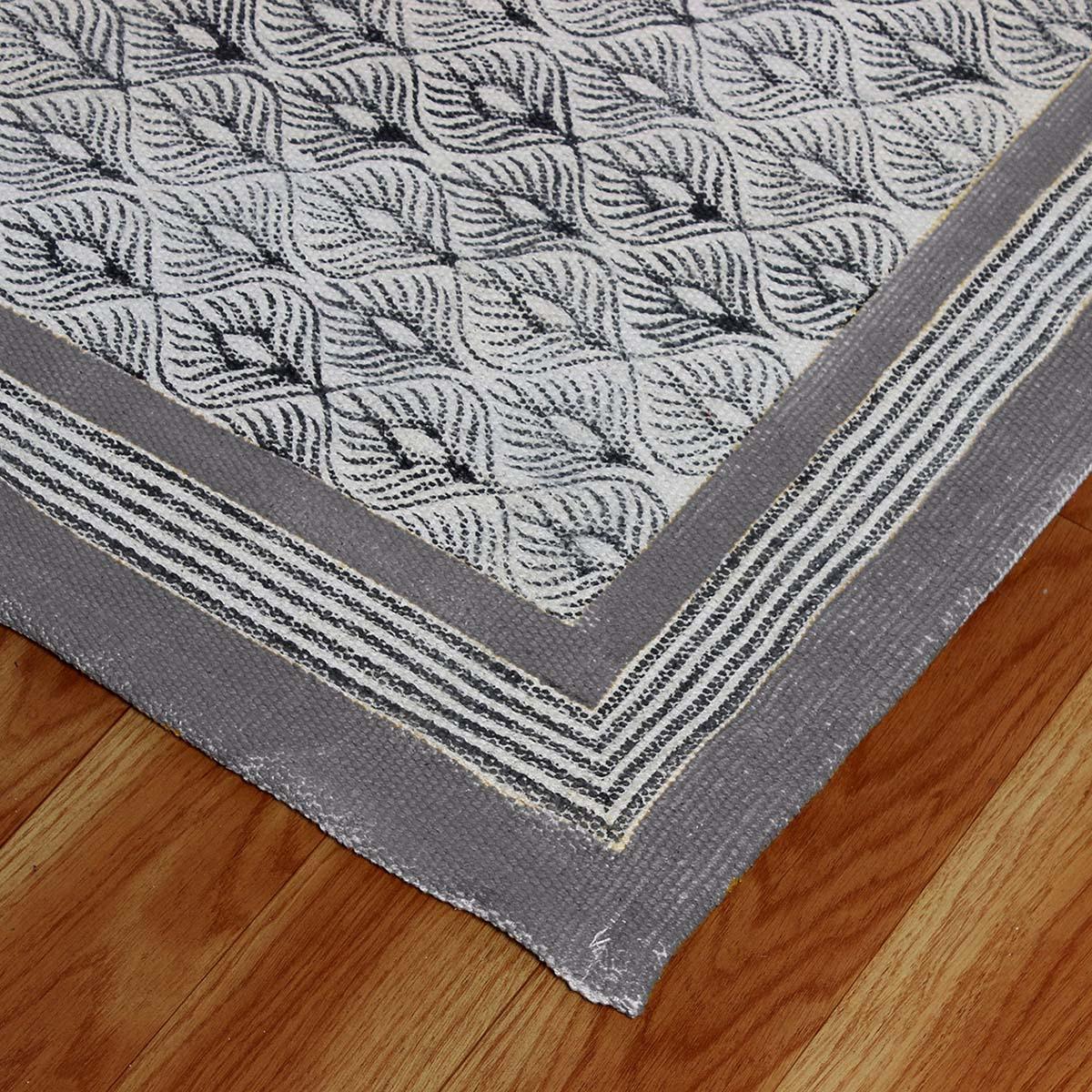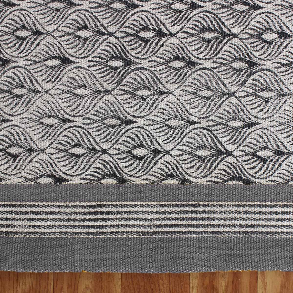 Tappeto in cotone grigio nero con stampa a blocchi a mano e motivo floreale alla moda per la zona giorno