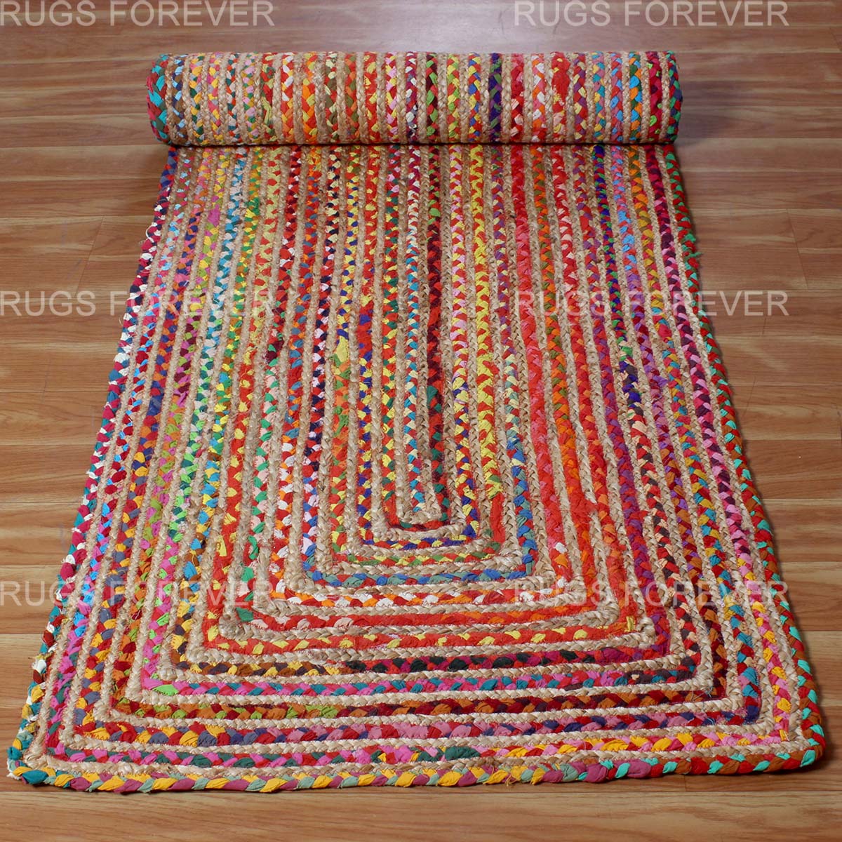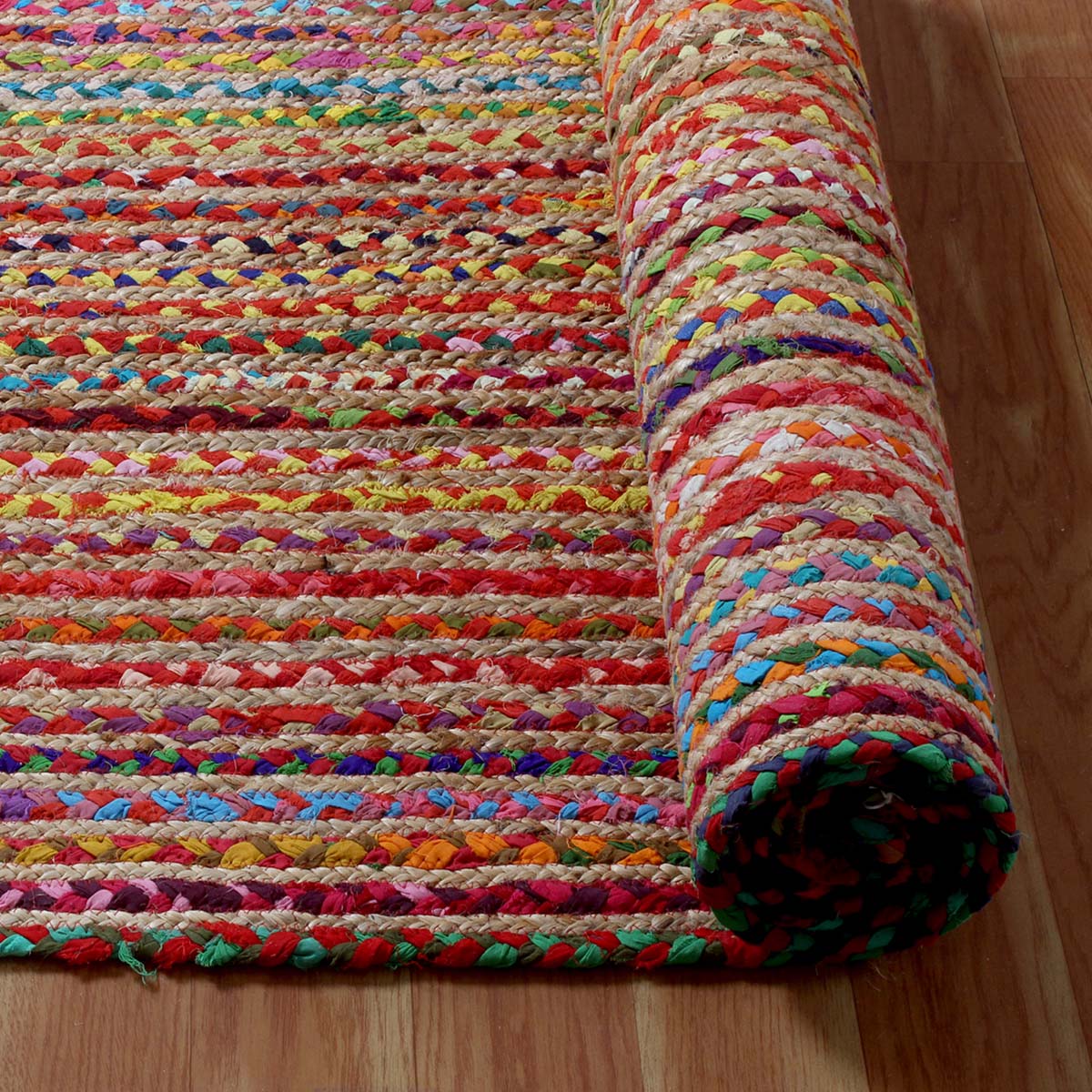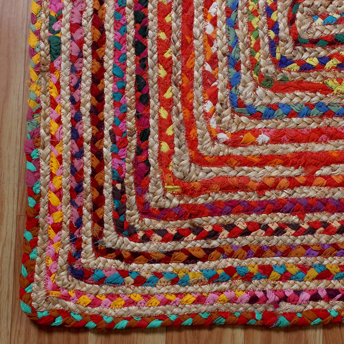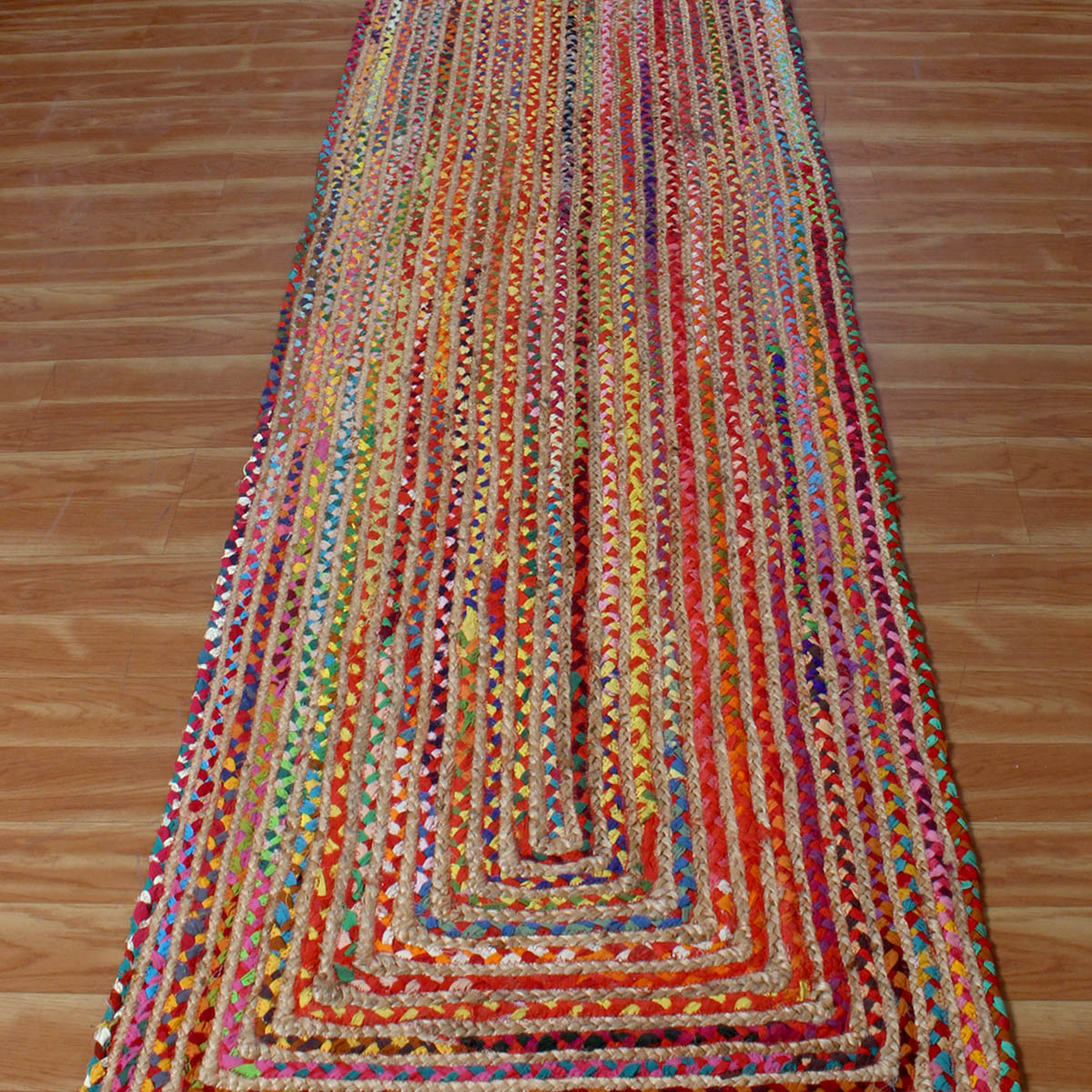 Geometric Multicolor Hand Braided Hall Way Decor Cotton Jute Rug