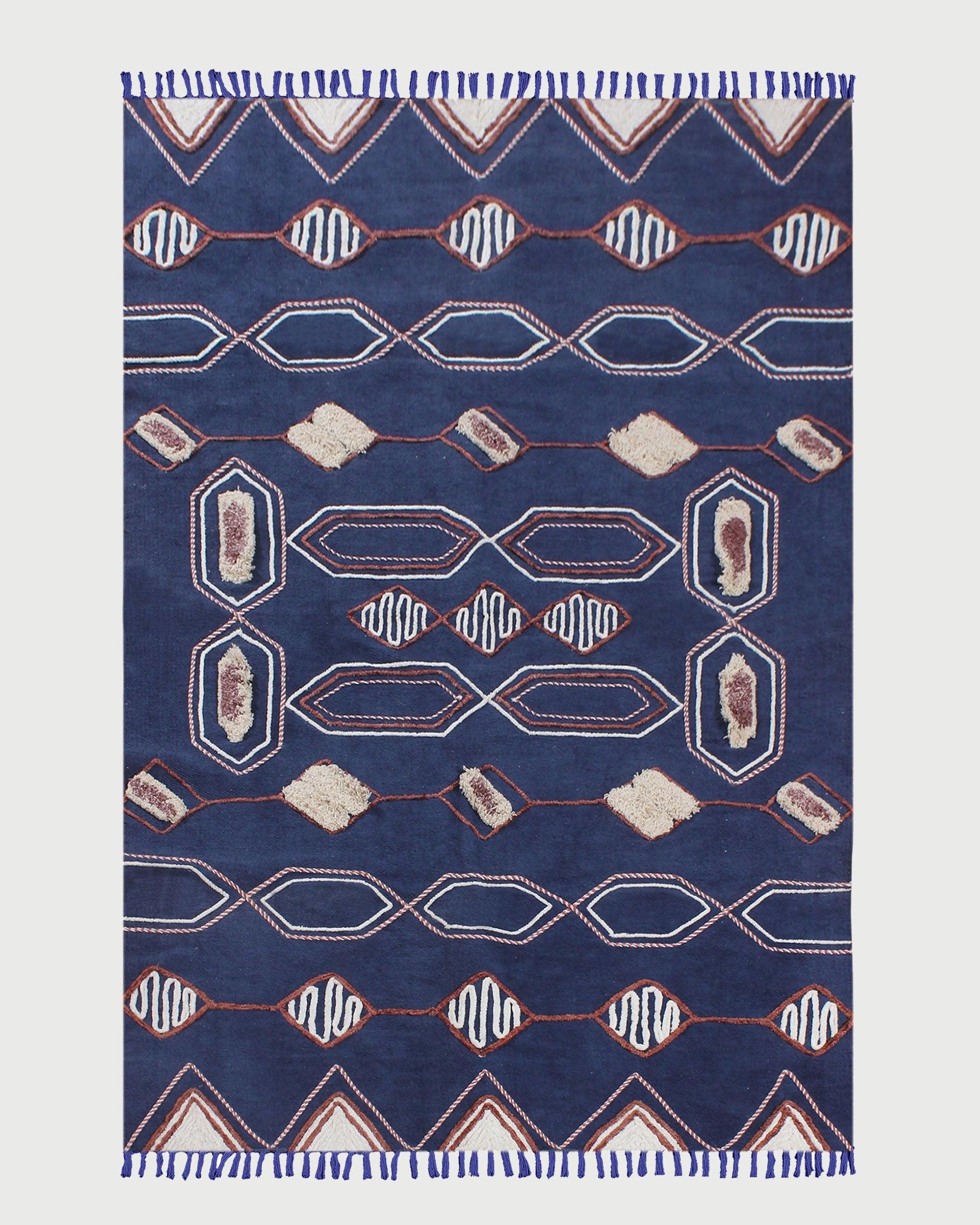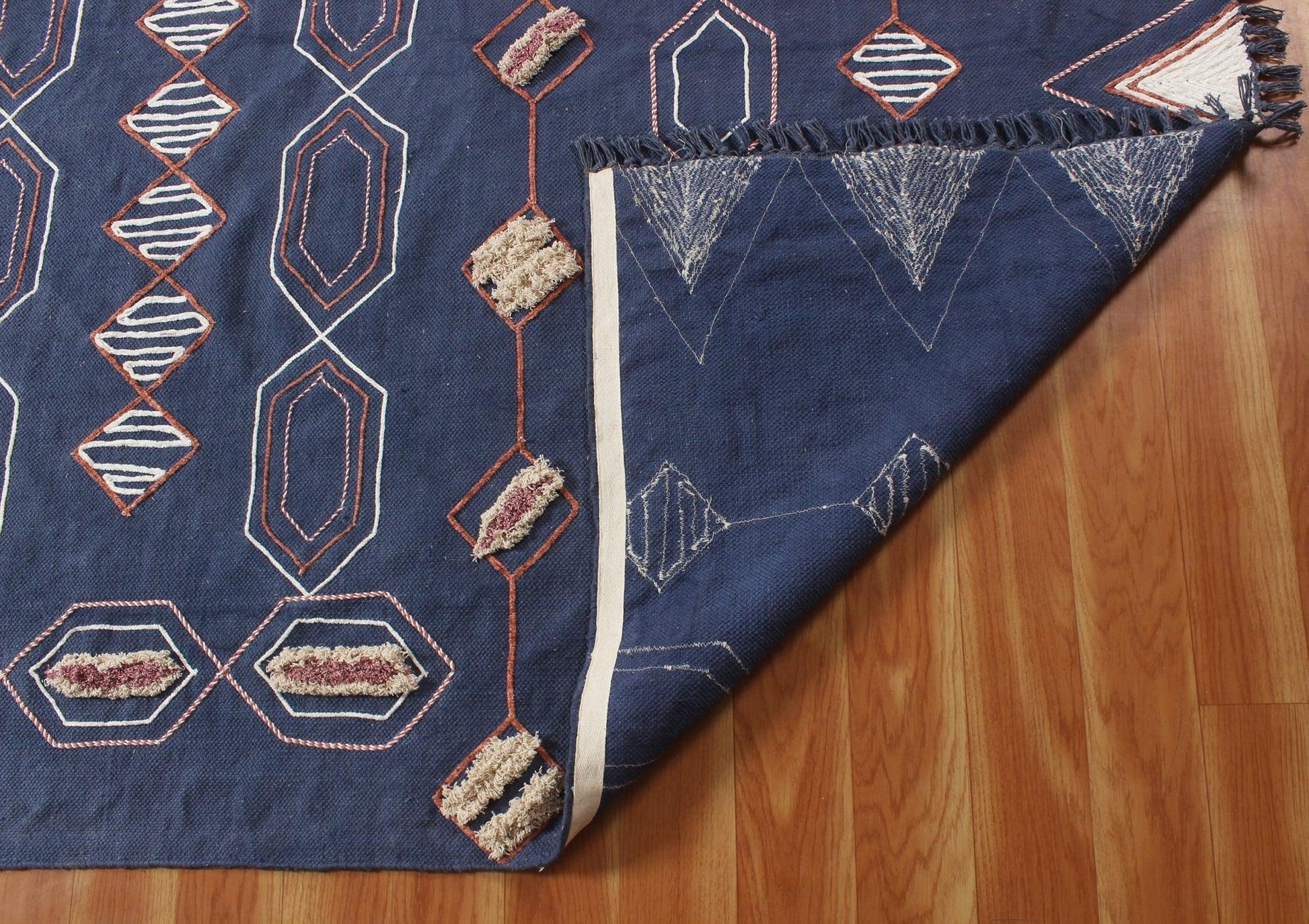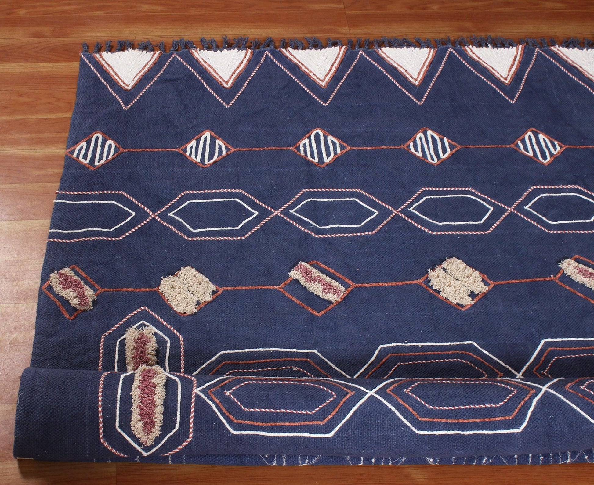 Hand Block Print Work Blue Beige Geometric Outhouse Decor Cotton Rug
