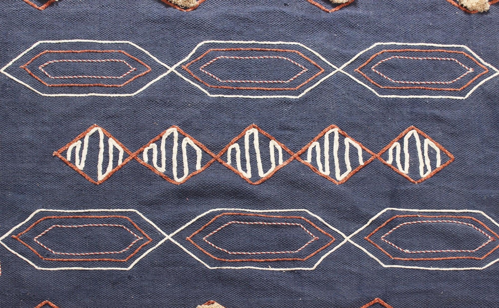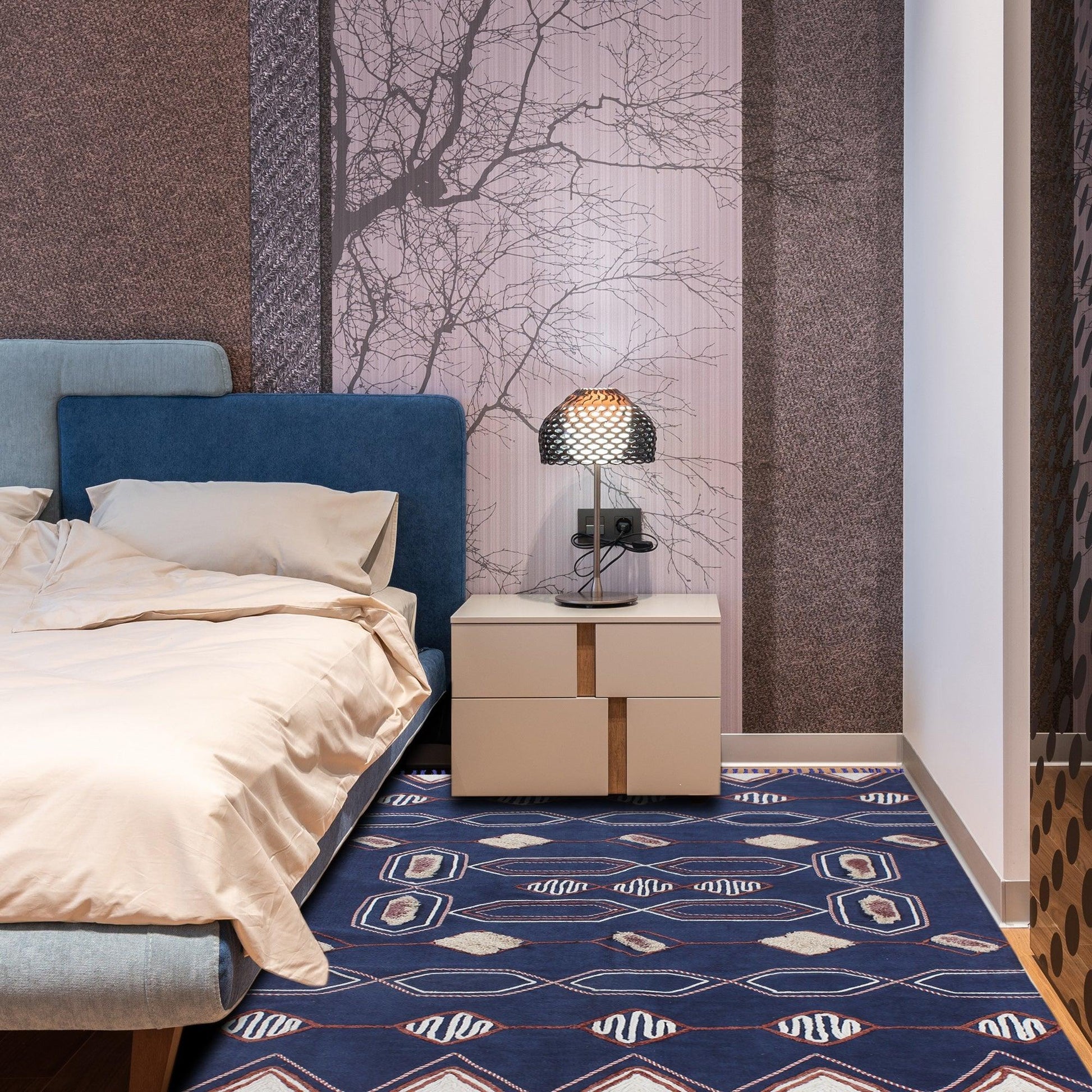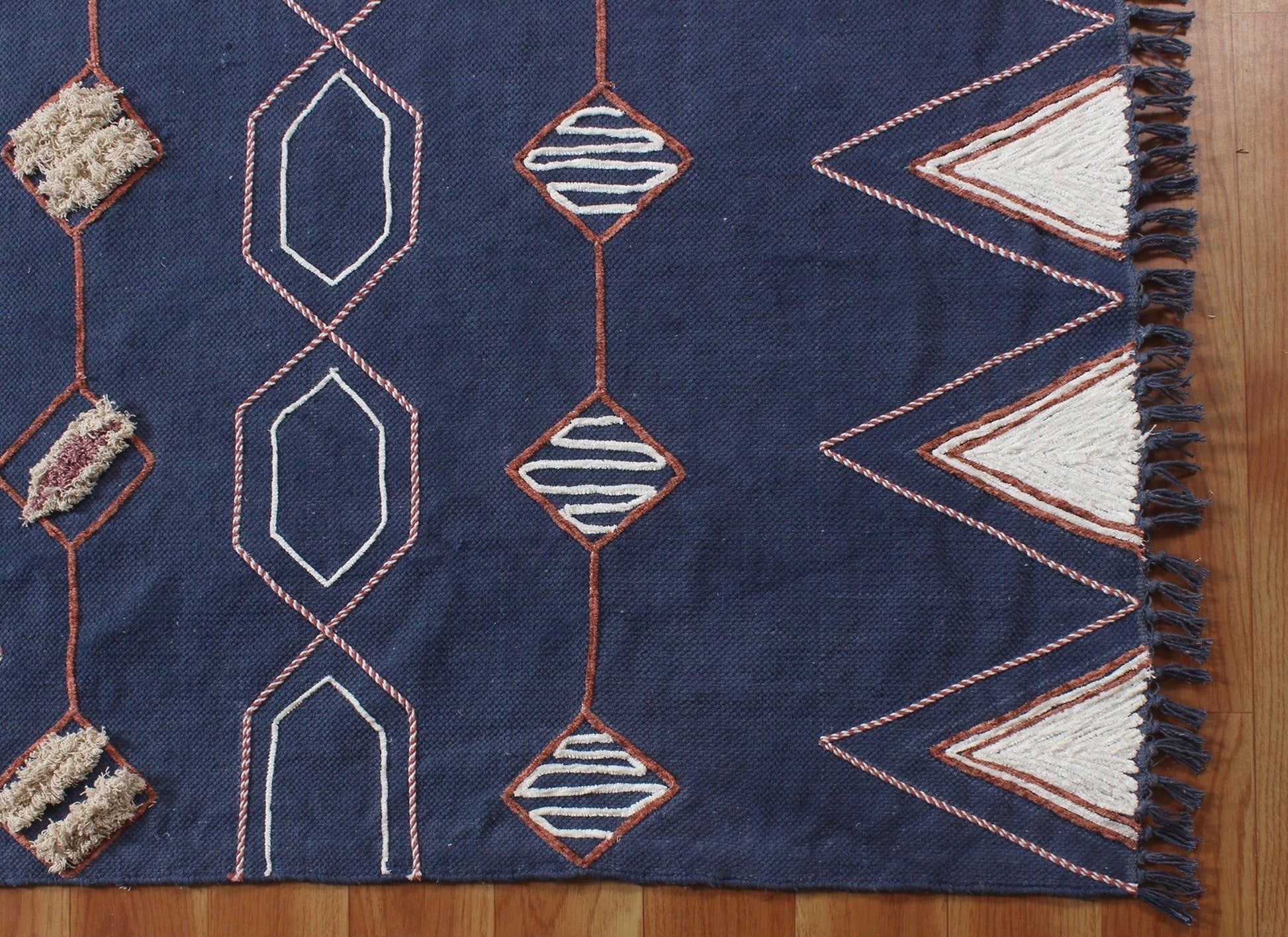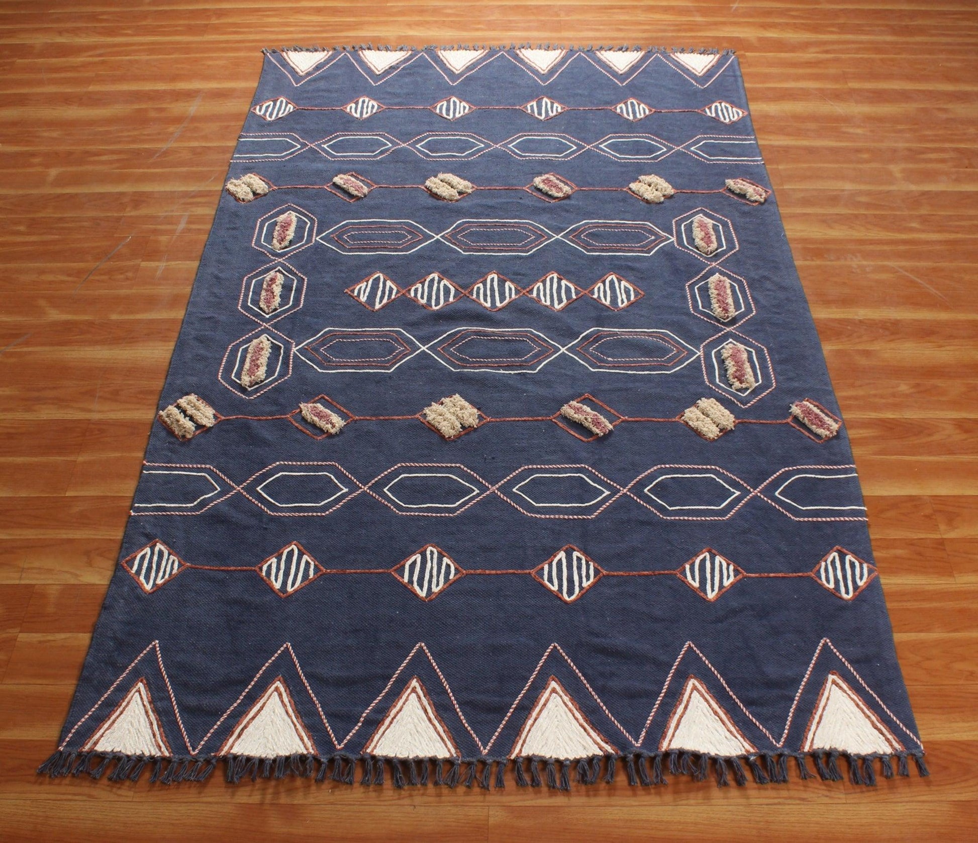 Hand Block Print Work Blue Beige Geometric Outhouse Decor Cotton Rug
