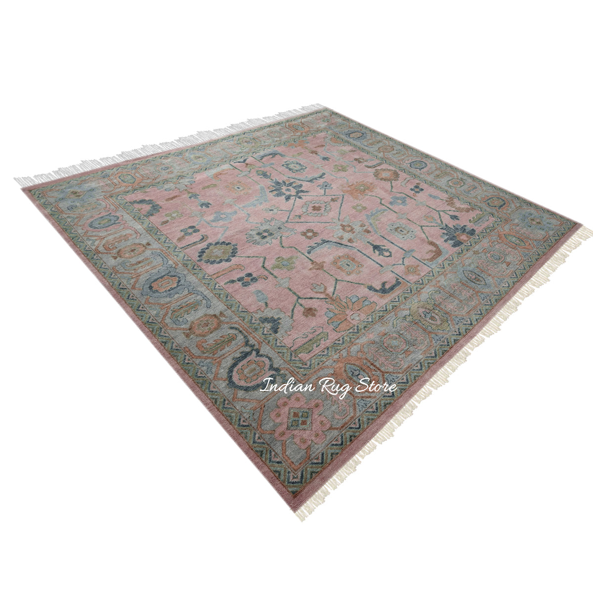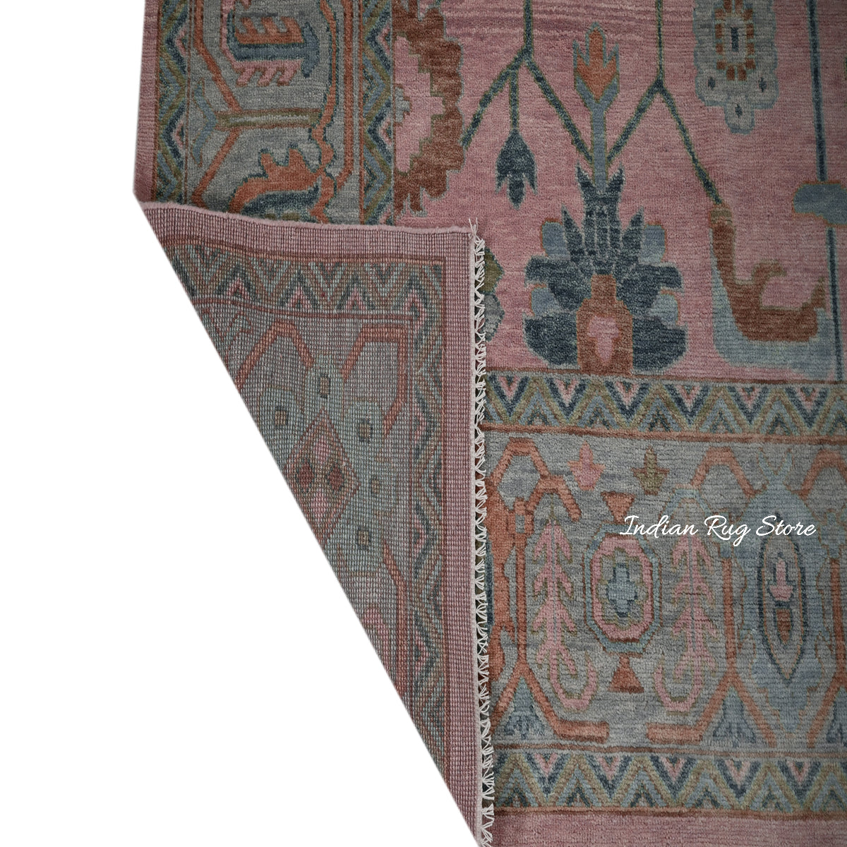 Multicolor Indian Hand Knotted Oushak Gray Wool Rug